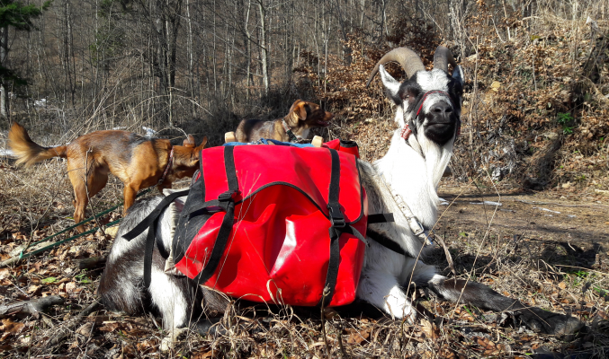 Wanderung, wobei die Geissen stets dabei sind und frei herumspringen. Einen